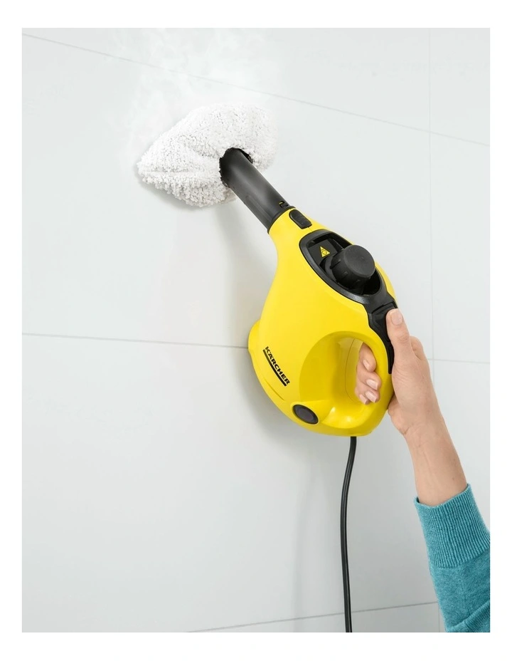 With both of the covers that are included in the set and that are made of high-quality microfibre, dirt and grease can be loosened and picked up with even better results when using the hand nozzle. Ideal for particularly heavy and stubborn dirt in bathrooms and kitchens. Even heavy dirt can be effortlessly removed from the hob. Thanks to the integrated elastic cord, fitting it onto the hand nozzle and removing it again is child’s play. Furthermore, it ensures that the cover is held securely on the hand nozzle during cleaning.