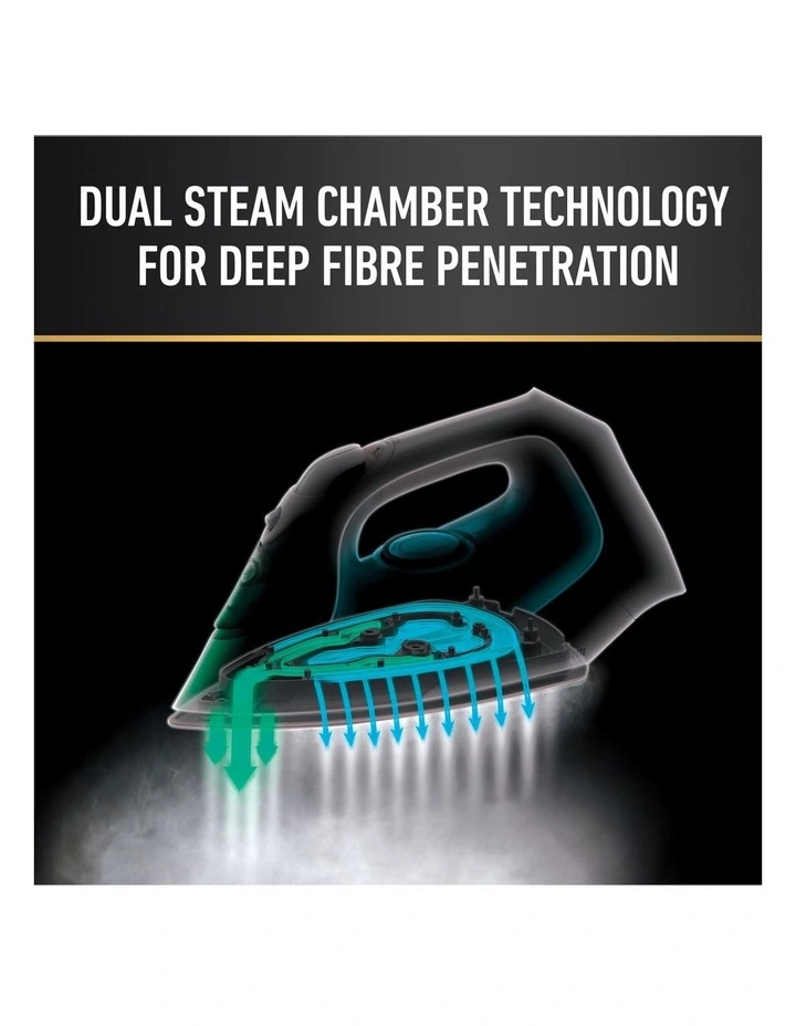- Dual Steam Chamber for Faster Ironing: The iron’s dual steam chamber delivers optimised steam pressure that deeply penetrates fibres for more efficient ironing.