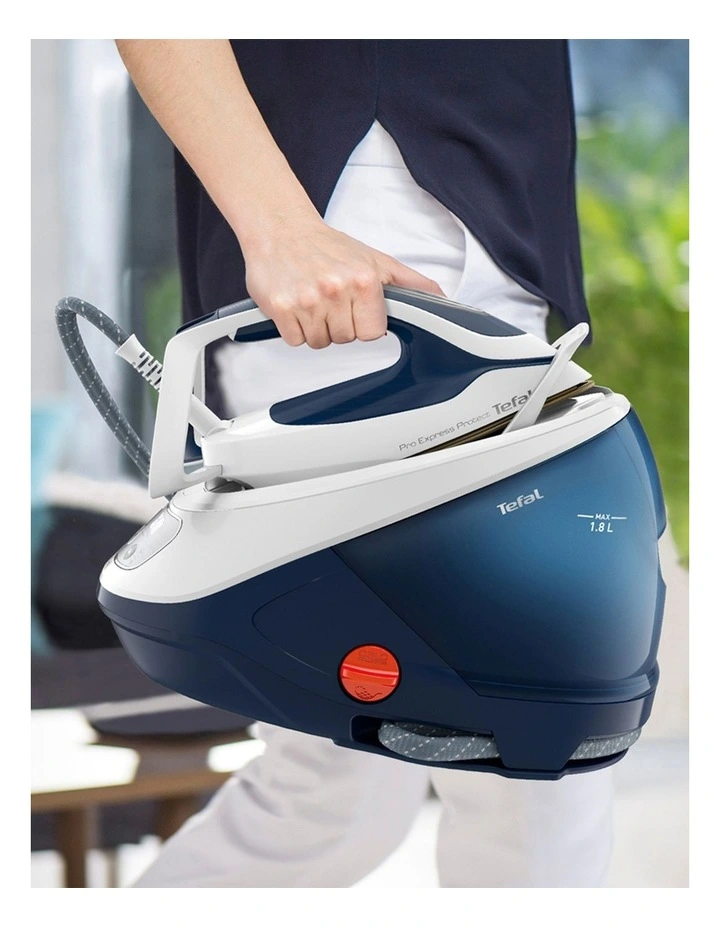 - Pro Express Protect puts professional efficiency in the palm of your hand, with exceptional results for even the most demanding garment care needs. This easy-to-use high pressure steam generator iron produces shorter ironing sessions and peak efficiency through combining 7,5 bars high pressure boiler technology with a continuous steam output of up to 125 g/minute, while the intense power of a 540 g/minute steam boost tackles even the most stubborn creases. The exclusive double protection system lets you iron in total peace of mind, with the anti-drip Protect System keeping your garments stain-free and the patented anti-calc system ensuring long-lasting performance. You also have no risk of burning any ironable fabrics with the no-setting technology keeping your garments 100% safe.